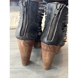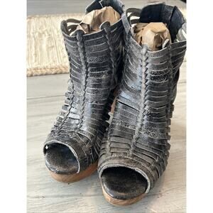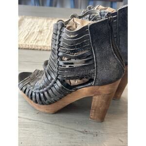Sbicca Vintage Collection Black Yani Huarache Leather Wood Platform Shoe Sz 8