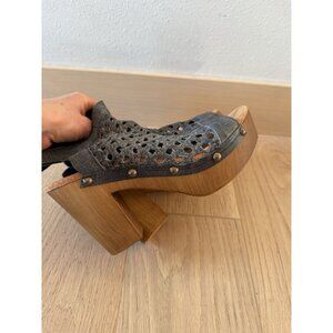 Sbicca Vintage Collection Distressed Wood Platform Heels Buckle Women’s 40 9