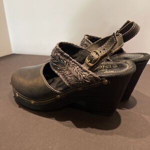 Sbicca Vintage Collection Faux Wood Platform Black Stud Boho Leather Platform