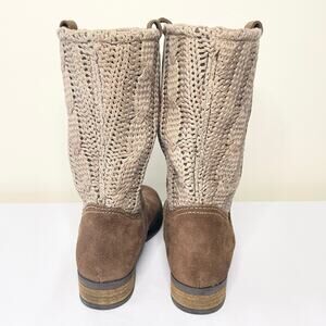 * Style: 3/4 height boots in brown suede with knit panel accents
