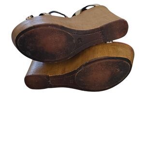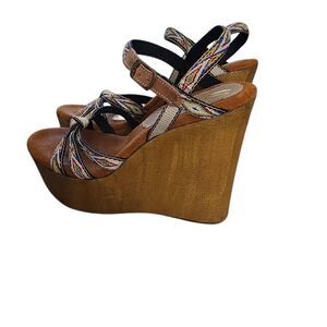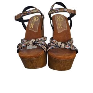 Sbicca Vintage Collection Women's Size 7 Tan Multi Wooden Wedge Sandals
