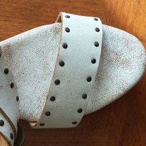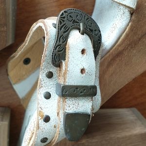 Sbicca White Realdeal leather sandals. 4" heel with 1.25" platform. Brass hardware. Never worn. Size 8 Medium. Perfume and smoke free home.