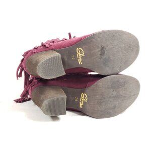 Sbicca Womens 7.5 Suede Fringe Heeled Ankle Boots Burgundy Western Style