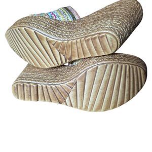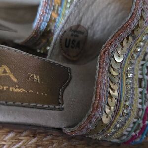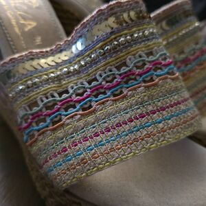 Sbicca Women's Size 7 Gold Sequin Tan Straw Espadrille Slide-On Wedges