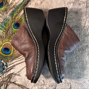 Sbicca of CA Womens Leather Mules sz 7.5 Heeled Slide Shoes Brown Boho Cottage