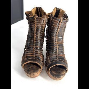 Sbicca Yani Huarache Leather Wood Platform Chunky Sandals Gladiator 8 Fits 7