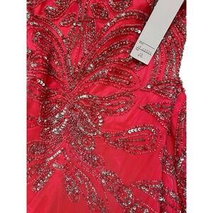 Scala #A13013 Polyester Bodice Hot Pink Beaded Sequin Dress Sz 12 (Strap Flaw)