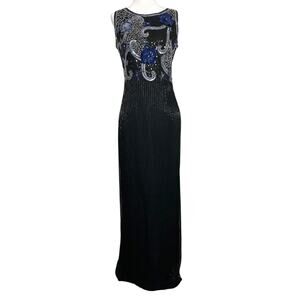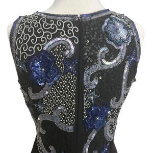 Scala Beaded Dress Sequin Embelished Floral Event Cocktail Black Medium