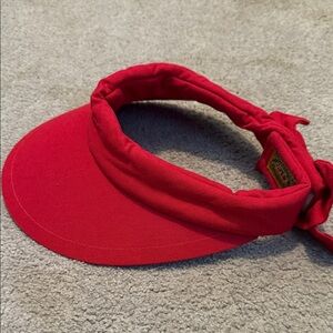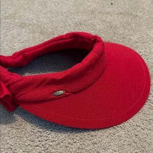 Bright red visor with a stylish bow. Perfect for sunny outings.