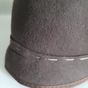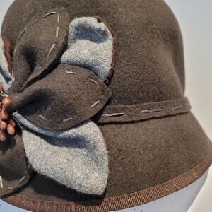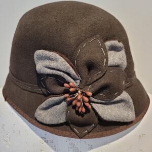 Scala Brown 100% Wool Cloche Bucket Hat with Floral Detail