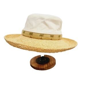Scala Canvas & Straw Sun Hat Palm Tree Cream Tan One Size Beach Summer