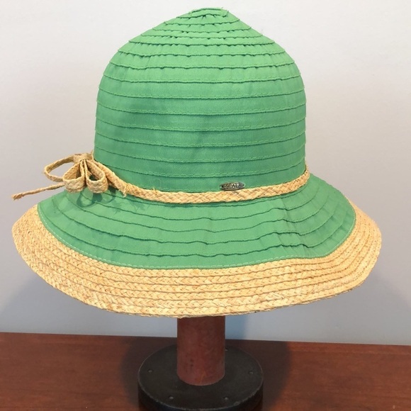 Scala Collection green straw bucket sun hat. It is in great condition.
