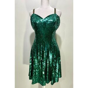 Scala Collection dress sequins disco night out green circular festive women's 8