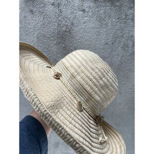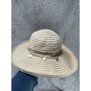 Scala Collezione Wide Brim Sun Hat Women’s Natural Braid Band Shell Beads One size Gently used