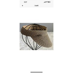 Scala Collezione Womens Straw Sun Visor Adjustable Hook/Loop Back Tan Black OSFM