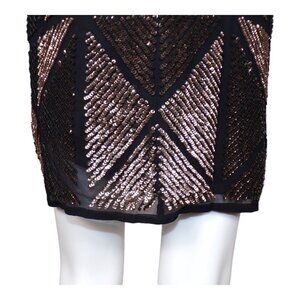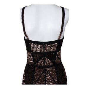 Scala Fitted Silk Cocktail Dress Gold Sequins in Geometric Patterns Sz 4 #934