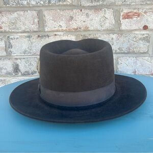 • Color: Brown (with original grosgrain ribbon and feather accent)