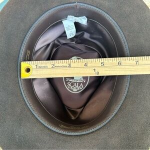 Scala Genuine Fur Felt Fedora Hat 7 1/8(57cm)Made in USA Classic Brown w/Feather
