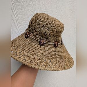 Scala Handcrafted Raffia Sun Hat With Palm Trees Packable Travel Beach Summer