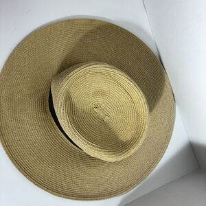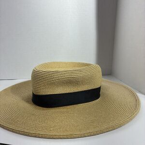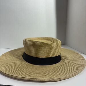 Scala Handmade Wide Brim Boater Straw Hat Tan Black Ribbon One Size Sun Hat