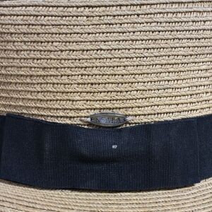 Elegant Scala handmade wide-brim boater hat with a timeless silhouette and black ribbon band. Crafted from lightweight straw with a soft, flexible designperfect for sunny days, travel, or beachwear.