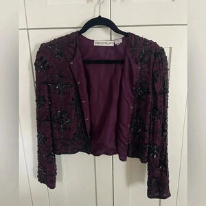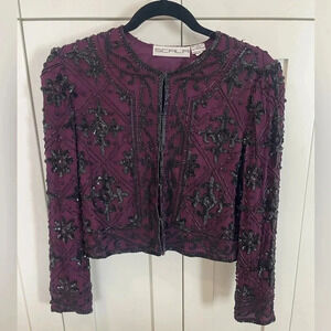 Scala Maroon Black Beaded Silk Evening Jacket