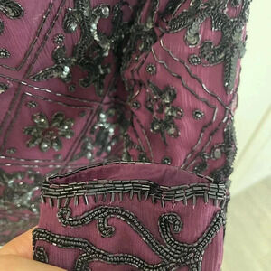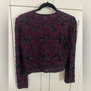 Scala Maroon Black Beaded Silk Jacket