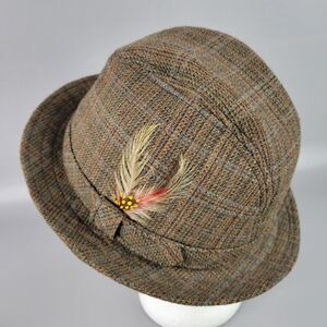 Scala Mens Classics Fedora Hats Wool Tweed Pheasant Feather Brown Size Medium