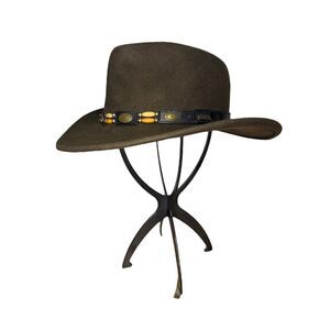 Men’s medium Scala Crushable Wool Felt Beaded Outback Fedora Hat - Olive