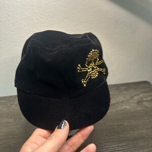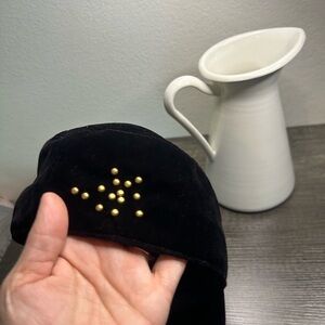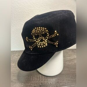 Scala Pronto Black Velvet Cadet Cap Gold Studded Skull Heart Hat