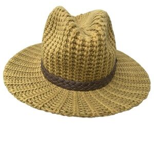 Scala Pronto Fedora Brown Mustard Knitted Fabric Braided Trim Hat OS - One
