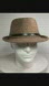 Brown herringbone tweed fedora by Scala Pronto has a subtle plaid pattern within herringbone. Brown tones. Black leatherette band with gold bit detail. Black satin lining. Black sweat band. One size. Unisex. Meas approx: brim 1.5”, height 4”, Inside 22”, outside 32”. Condition: New without tags. Smoke free and pet free environment.