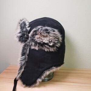 Scala Pronto One Size Faux Fur Trooper Hat Black Outdoors Winter Trapper Aviator