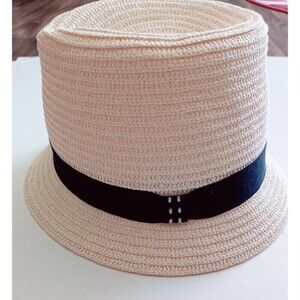 Scala Pronto Straw Fedora Hat With Ribbon Bow Band 100% Paper Polyester Beige