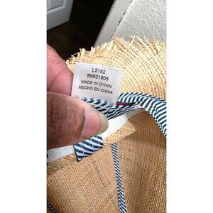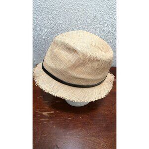 pre owned, minor wear, Frayed edges on the brim and minor imperfections in the woven straw, good conditions.
