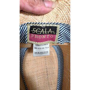 Scala Pronto Women's Natural Woven Straw Fedora Black Band & Blue Stone Accents