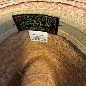 This hat is in great condition and has no stains. It seems like one of their older hats so I’m guessing it isn’t sold anymore. The little Scala tag is getting corroded form being here in the Hawaiian salty air but other than that the hat is in perfect shape. Let me know if you have any questions!