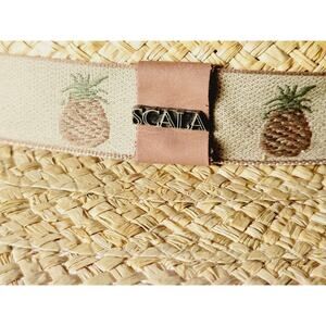 Scala Raffia Straw Hat Palm Tree Pineapple Band S/M 21.5” Summer Boho Coastal