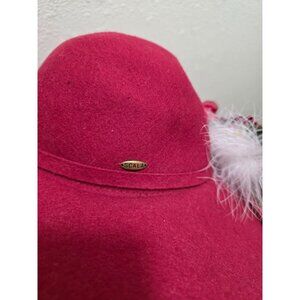 Scala Red 100% Wool Wide Brim Hat With Floral & Feather Accent Size L