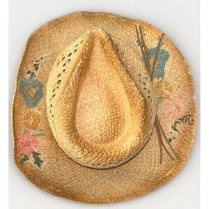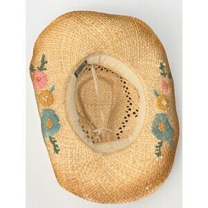 Scala San Minato Western Floral Embroidered Raffia Rodeo Boho Adjustable Hat
