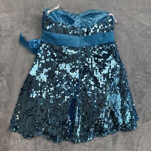 Scala Womens 6 Blue Strapless Sequin Dress Cocktail Prom Party Short