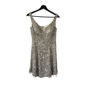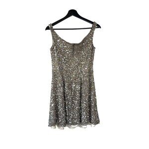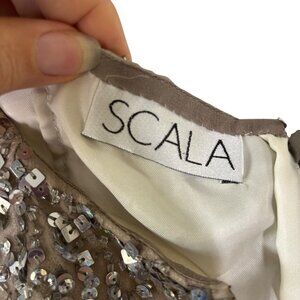 Scala Silver Champagne Sequin Skater Short Sleeveless Dress Medium