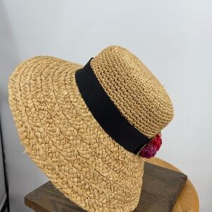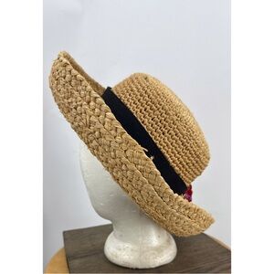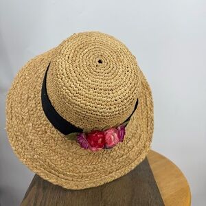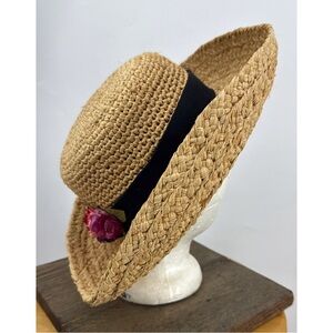 Scala Straw Sun Hat with Black Band floral Accent OS