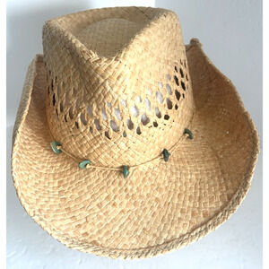 Scala Studio Head/Wear Cowboy Style Sun Straw Turquoise Beads Fiber Raffia 1 Sz