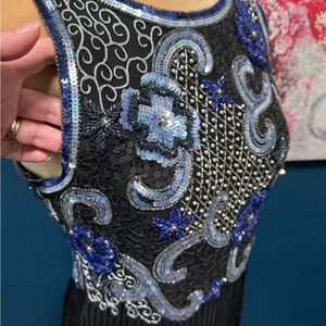 Scala Vintage 90's Beaded Silk Black and Blue Full Length Gown Size M.