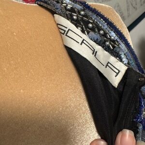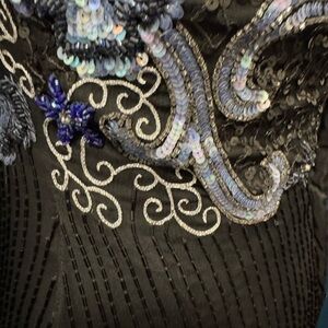 Scala Vintage 90's Beaded Silk Black and Blue Full Length Gown Size M.