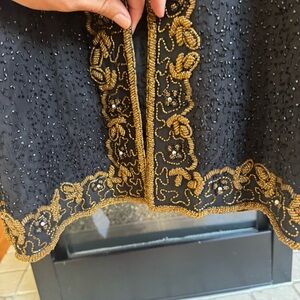 Scala Vintage Black Beaded Silk Open Front Evening Jacket Gold Boarder XL