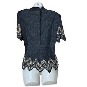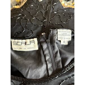Scala Vintage Black and Gold Beaded Top Blouse M