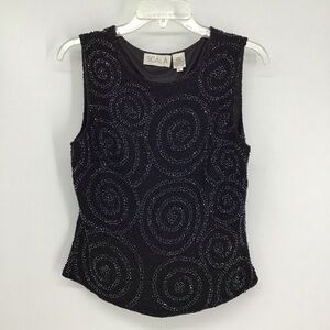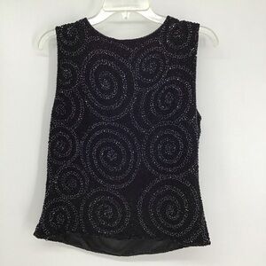 Scala Vintage Silk Beaded Sleeveless Shell Top Black Cocktail Party Evening Size L