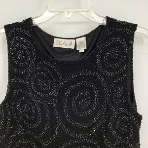 Scala Vintage Silk Beaded Sleeveless Shell Top Black Party Evening Size L